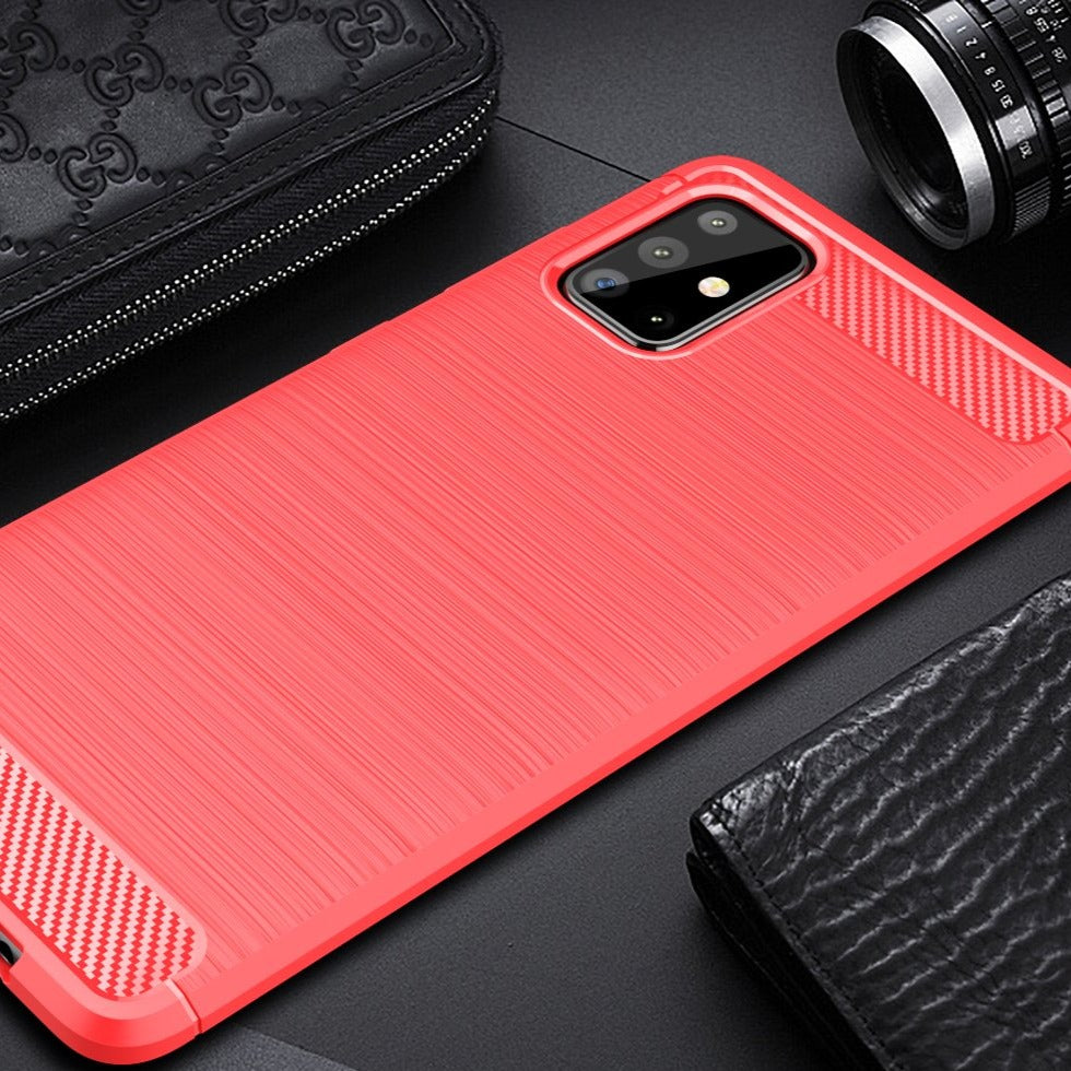Samsung Galaxy A71 hiilikuitu suojakuori (punainen)